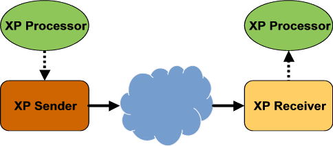 The relationship between an XP sender and an XP processor and an XP receiver and an XP processor respectively can be illustrated as follows: