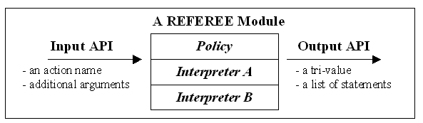 This section presents a detail execution trace from my reference REFEREE implementation in the Jigsaw proxy. The REFEREE execution environment is provided with the following bootstrapping information: