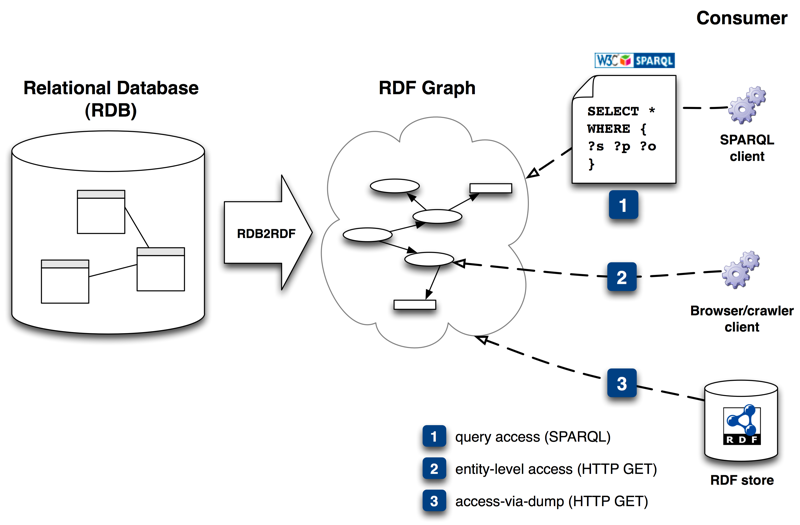 In certain cases query access or entity-level access (see also explanation in Section 1.1 Why Mapping RDBs to RDF? ) to the exposed RDF graph is not sufficient.