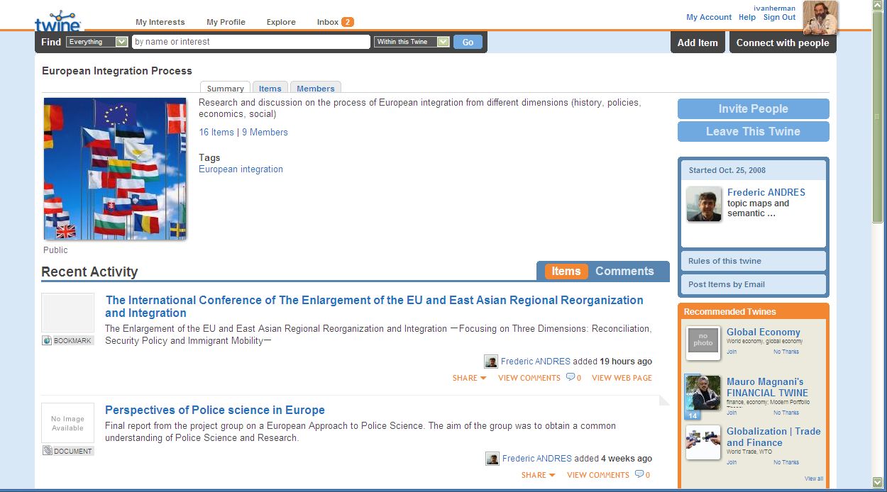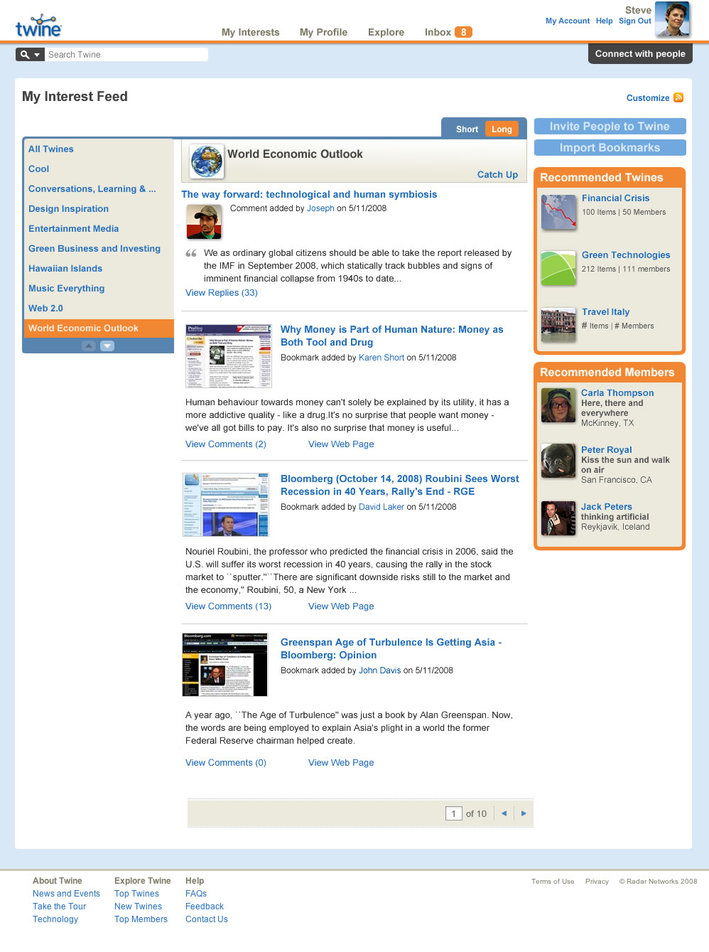 Figure 3: Example for a user’s “interest” page on Twine (see the complete and larger image separately)