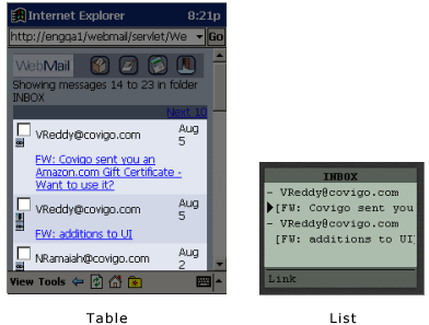 hyperlinks, while Openwave browsers are better suited to the <select>
