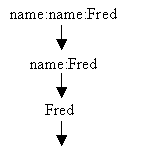 The other approach we could take is to use different names to distinguish between the name "Fred" and the person, Fred. For example, we could adopt the convention of writing the name "name:Fred" when we wish to refer to the name "Fred", but continue to write the name "Fred" when we wish to refer to the person, Fred. Of course, at some point we may also wish to refer to the name "name:Fred" itself, so we may need to write "name:name:Fred" for this purpose, and so on. So we have: