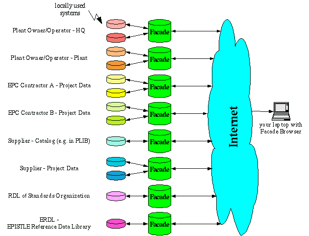 ISO 15926 defines the so-called 'Façade'. This is a web server with a relational data base that can store all exchanged XML files in a manner that results in a full 4D integration of the information. This '4D' means that the information is integrated in space and time.