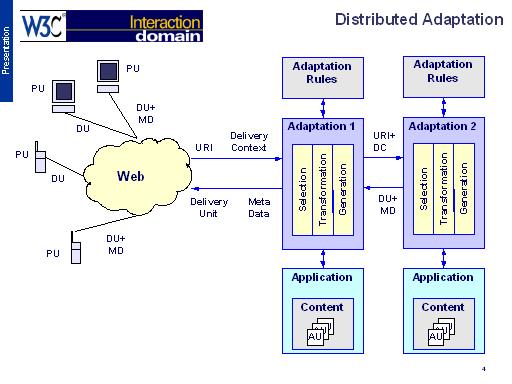 Represents multistep adaptation. Some parts of the adaptation distributed. Selection of appropriate version of a media resource, for example.