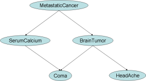 This is the Bayesian network for the metastatic cancer case. Its serialization in the XMLBIF is here. The XML fragments concerning the HeadAche node are, for example, as following.