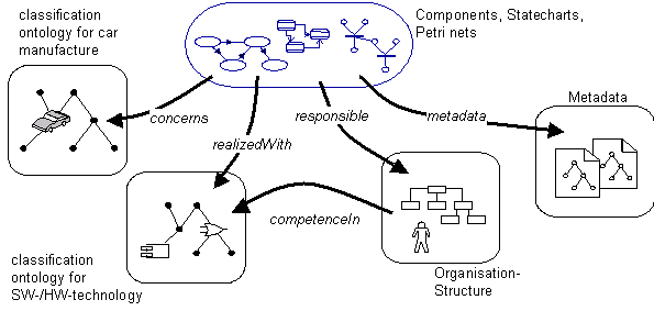 Organizations increasingly recognize the necessity to create and manage project entities like (meta-) models, document metadata, and classification ontologies in such a manner that the integrative usage of these entities (called domain artefacts) is supported. Figure 1 shows an example from the automotive domain with various artefact groups. A repository prototype for managing, processing, and querying such domain artefacts has to focus on the following requirements: