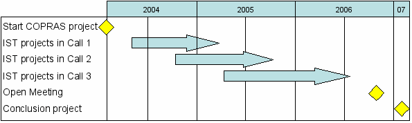 An overview of the work involved in the first steps of the COPRAS project with respect to FP6 IST projects in Call 1 is displayed in the diagram below: