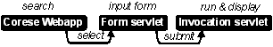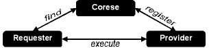 In the corporate memories we developed so far, the annotations generally describe documentary resources or corporate structures, but, when relying on schemata as the ones advocated in OWL-S [10], these annotations can describe web services available online (intranet, extranet, Internet). This means that Corese allows us to automate the identification of web services available to a user. Following a service-oriented architecture and a find-bind-execute schema [11] Corese nicely fits in the picture with semantic web services: ![]() In this new architecture, we moved: