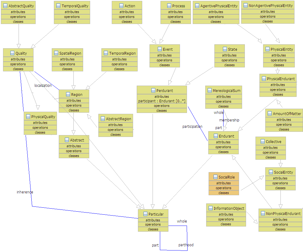 What follows is a summary of what resulted by framing W3 concepts under DOLCE conceptualization. The results (see Figure 7) show that most of the concepts where smoothly positioned under DOLCE categories, but some concepts are not clearly placed and requires further analysis.