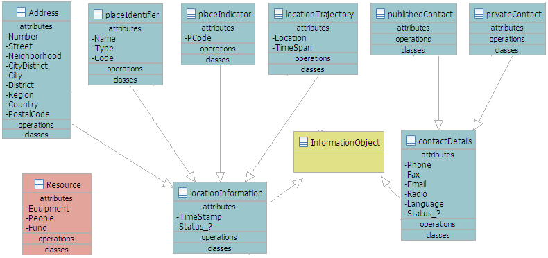 Emergency represents the actual incident that is being coordinated. Emergencies can happen unexpectedly, such as an earthquake, or can be the result of significant vulnerabilities in the society such as HIV/AIDS. The services address the needs in different phases of an emergency. Location_Information represents the location where the emergency takes place. Related Emergencies should also be linked to enable shared resources and improved lessons-learnt outcomes