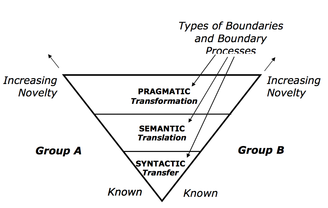 Each aspect of the interoperability gap should be tackled with a targeted approach, leading to the development of an 'integrated' approach. For example, Figure 8, the syntactic, semantic and pragmatic gaps are identified 'at the boundary' level (where they intersect), which is where change/transformation/innovation tends to take place, and corresponding solutions suggested.