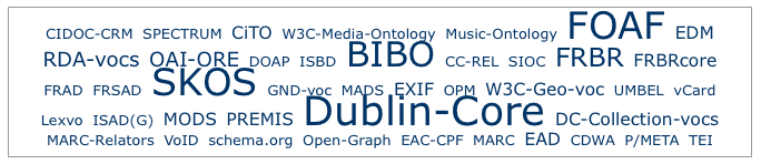 This sub-section lists the relevant ontologies (OWL or RDFS) available at the time of writing this report. To help readers orient themselves in our selection, we first introduce metadata element sets that originate from the Libraries, Archives, Museums, and Information communities. We then present relevant element sets, which are rooted in other communities. This categorization is often arbitrary, as many vocabularies already result from cross-community work. We believe, however, that this shows the great potential for the Linked Data approach, where easily sharing, re-using or extending a diversity of element sets independently from their origin is the rule.