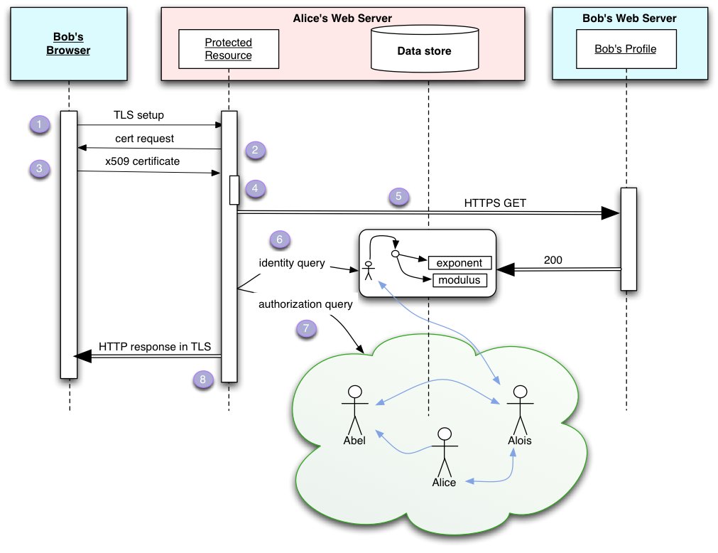This section will explain how a Verification Agent may use the information discovered via a WebID URI to determine if one should be able to access a particular resource. It will explain how a Verification Agent can use links to other RDFa documents to build knowledge about the given WebID.