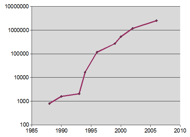 Note that a doubling per 2 years is the same as a 10 fold increase every 6 and a bit years; it is the doubling that is important, less the period.