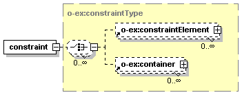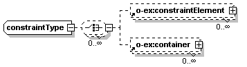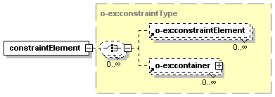 | source | <xsd:complexType name="constraintType"> <xsd:choice minOccurs="0" maxOccurs="unbounded"> <xsd:element ref="o-ex:constraintElement" minOccurs="0" maxOccurs="unbounded"/> <xsd:element ref="o-ex:container" minOccurs="0" maxOccurs="unbounded"/> </xsd:choice> </xsd:complexType> |