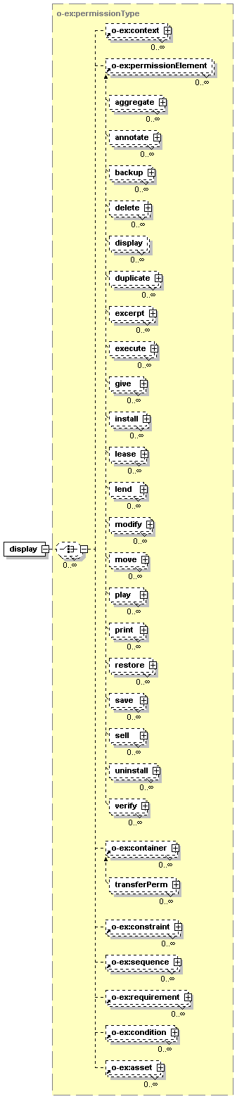 | source | <xsd:element name="display" type="o-ex:permissionType" substitutionGroup="o-ex:permissionElement"/> |