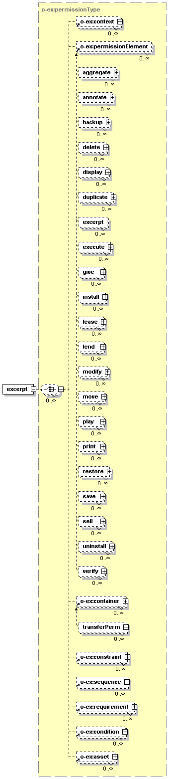 | source | <xsd:element name="excerpt" type="o-ex:permissionType" substitutionGroup="o-ex:permissionElement"/> |