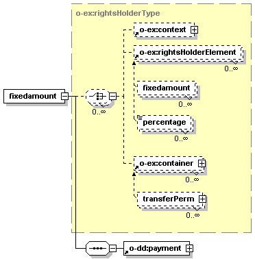 | source | <xsd:element name="fixedamount" substitutionGroup="o-ex:rightsHolderElement"> <xsd:complexType> <xsd:complexContent> <xsd:extension base="o-ex:rightsHolderType"> <xsd:sequence> <xsd:element ref="o-dd:payment"/> </xsd:sequence> </xsd:extension> </xsd:complexContent> </xsd:complexType> </xsd:element> |
