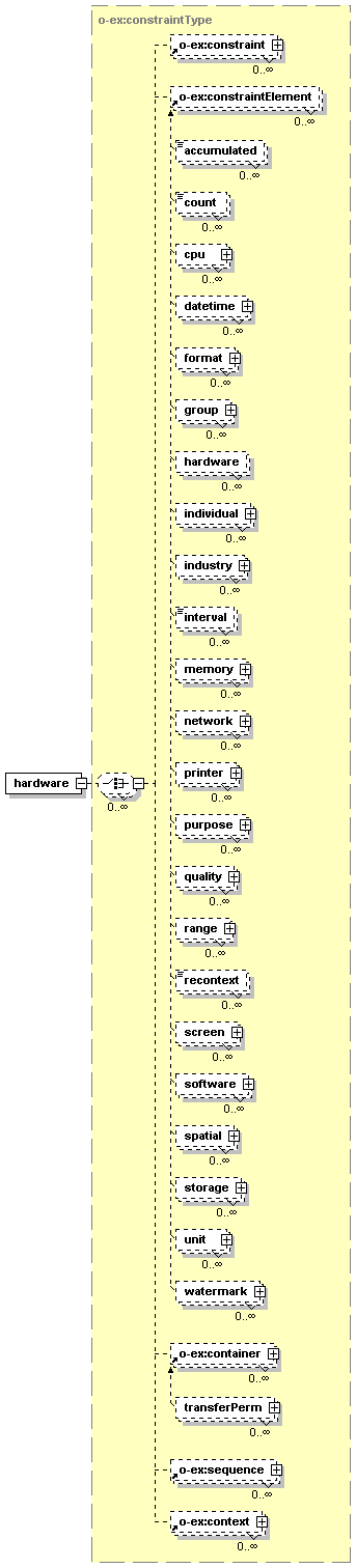 | source | <xsd:element name="hardware" type="o-ex:constraintType" substitutionGroup="o-ex:constraintElement"/> |