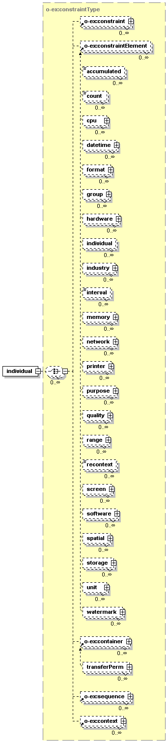 | source | <xsd:element name="individual" type="o-ex:constraintType" substitutionGroup="o-ex:constraintElement"/> |