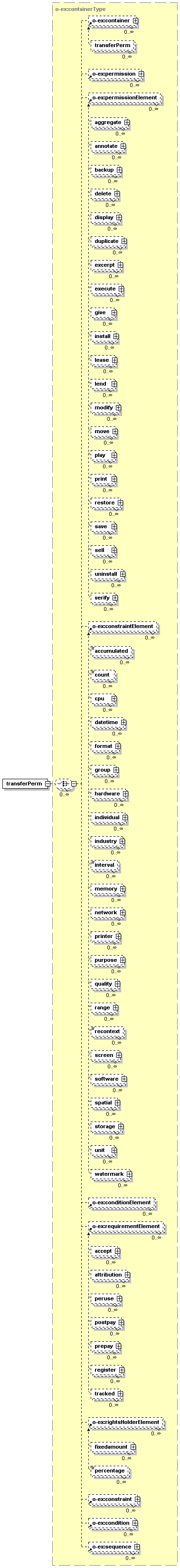 | source | <xsd:element name="transferPerm" substitutionGroup="o-ex:container"> <xsd:complexType> <xsd:complexContent> <xsd:extension base="o-ex:containerType"> <xsd:attribute name="downstream" default="equal"> <xsd:simpleType> <xsd:restriction base="xsd:NMTOKEN"> <xsd:enumeration value="equal"/> <xsd:enumeration value="less"/> <xsd:enumeration value="notgreater"/> </xsd:restriction> </xsd:simpleType> </xsd:attribute> </xsd:extension> </xsd:complexContent> </xsd:complexType> </xsd:element> |