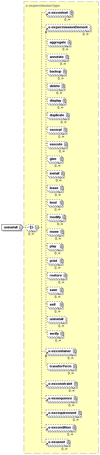 | source | <xsd:element name="uninstall" type="o-ex:permissionType" substitutionGroup="o-ex:permissionElement"/> |