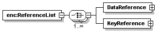 | source | <xsd:element name="ReferenceList"> <xsd:complexType> <xsd:choice maxOccurs="unbounded"> <xsd:element name="DataReference" type="xenc:ReferenceType"/> <xsd:element name="KeyReference" type="xenc:ReferenceType"/> </xsd:choice> </xsd:complexType> </xsd:element> |