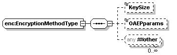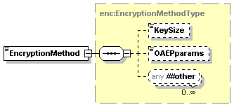 | source | <xsd:complexType name="EncryptionMethodType" mixed="true"> <xsd:sequence> <xsd:element name="KeySize" type="xenc:KeySizeType" minOccurs="0"/> <xsd:element name="OAEPparams" type="base64Binary" minOccurs="0"/> <xsd:any namespace="##other" minOccurs="0" maxOccurs="unbounded"/> </xsd:sequence> <xsd:attribute name="Algorithm" type="anyURI" use="required"/> </xsd:complexType> |