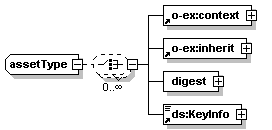 | source | <xsd:complexType name="assetType"> <xsd:choice minOccurs="0" maxOccurs="unbounded"> <xsd:element ref="o-ex:context"/> <xsd:element ref="o-ex:inherit"/> <xsd:element name="digest"> <xsd:complexType> <xsd:choice minOccurs="0" maxOccurs="unbounded"> <xsd:element ref="ds:DigestMethod"/> <xsd:element ref="ds:DigestValue"/> </xsd:choice> </xsd:complexType> </xsd:element> <xsd:element ref="ds:KeyInfo"/> </xsd:choice> <xsd:attributeGroup ref="o-ex:IDGroup"/> <xsd:attribute name="type"> <xsd:simpleType> <xsd:restriction base="xsd:NMTOKEN"> <xsd:enumeration value="work"/> <xsd:enumeration value="expression"/> <xsd:enumeration value="manifestation"/> <xsd:enumeration value="item"/> </xsd:restriction> </xsd:simpleType> </xsd:attribute> </xsd:complexType> |