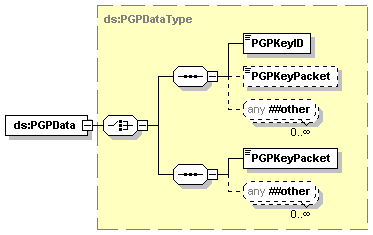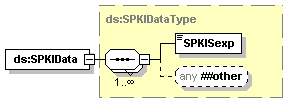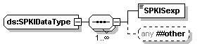 | source | <xsd:complexType name="SPKIDataType"> <xsd:sequence maxOccurs="unbounded"> <xsd:element name="SPKISexp" type="base64Binary"/> <xsd:any namespace="##other" processContents="lax" minOccurs="0"/> </xsd:sequence> </xsd:complexType> |