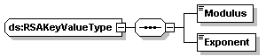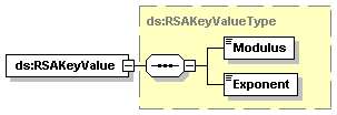 | source | <xsd:complexType name="RSAKeyValueType"> <xsd:sequence> <xsd:element name="Modulus" type="ds:CryptoBinary"/> <xsd:element name="Exponent" type="ds:CryptoBinary"/> </xsd:sequence> </xsd:complexType> |