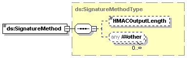 | source | <xsd:complexType name="SignatureMethodType" mixed="true"> <xsd:sequence> <xsd:element name="HMACOutputLength" type="ds:HMACOutputLengthType" minOccurs="0"/> <xsd:any namespace="##other" minOccurs="0" maxOccurs="unbounded"/> </xsd:sequence> <xsd:attribute name="Algorithm" type="anyURI" use="required"/> </xsd:complexType> |
