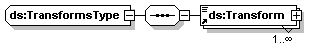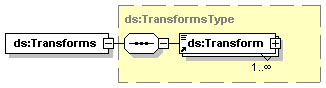 | source | <xsd:complexType name="TransformsType"> <xsd:sequence> <xsd:element ref="ds:Transform" maxOccurs="unbounded"/> </xsd:sequence> </xsd:complexType> |