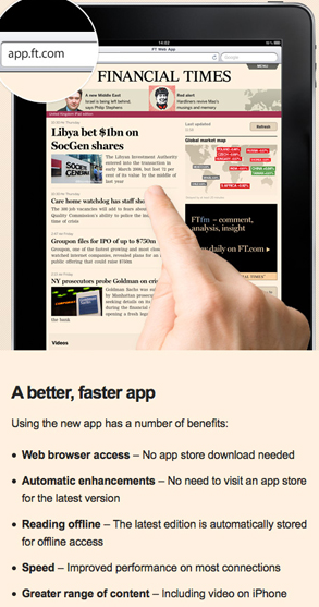 | Offline access | Web APIs: Web Storage, IndexedDB, File API |
