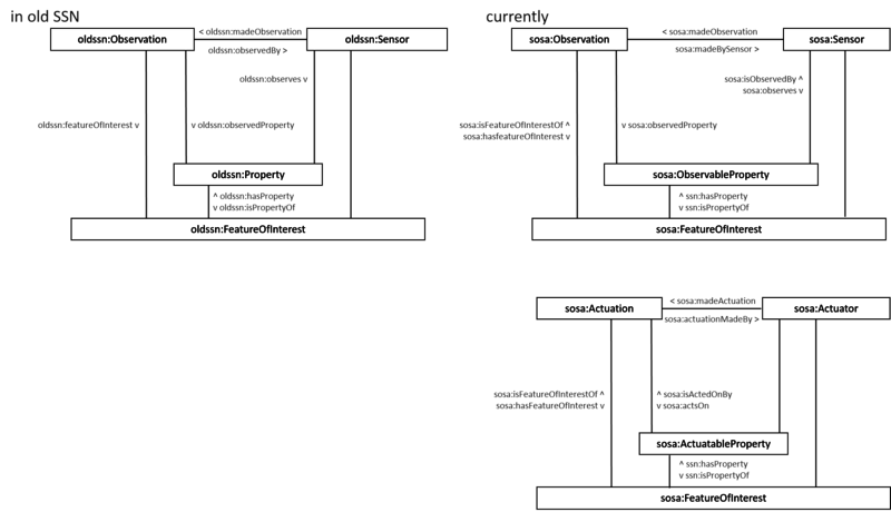 FeatureOfInterest, xxxProperty, {Actuator/Sensor}, {Actuation/Observation}