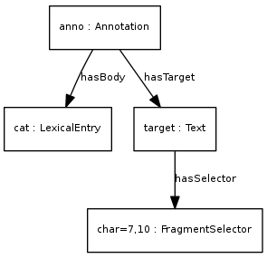 We will now give an example of annotating a word "cat" occurring at character 7 in a file at the URL 2, where the lemon element is given as the body of an annotation. For example