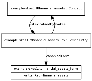 The above represents the recommended way of linking a SKOS concept to a lexical entry in the lexicon ontology model.