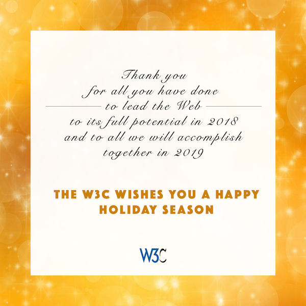 Thank you for all you have done to lead the Web to its full potential in 2018, and to all we will accomplish together in 2019. The W3C wishes you a happy holiday season.
