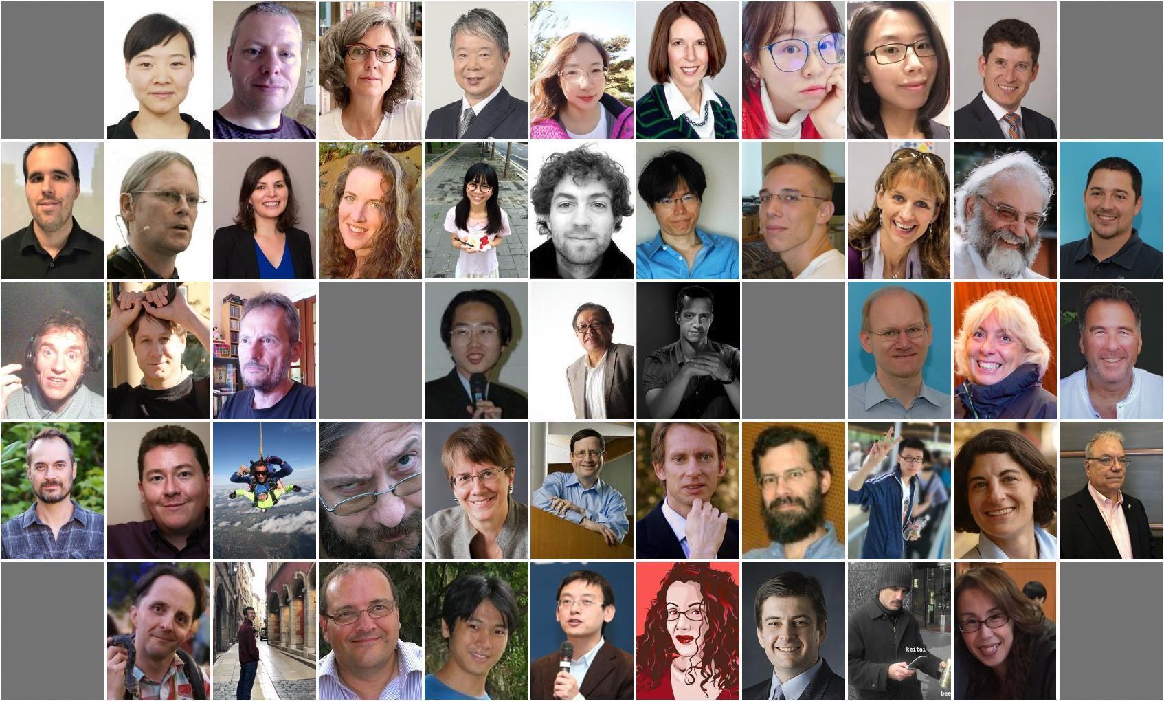 Fifth row: Pierre-Antoine Champin, Fuqiao Xue, Steve Lee, Denis Ah-Kang, Chunming Hu, Amy van der Hiel, Philippe Le Hégaret, Mike Smith, Naomi Yoshizawa.