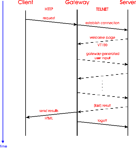 Providing a seamless service integration into WWW means hiding the terminal emulation feeling from the user. This implies that a gateway has to run the terminal emulation on behalf of the client (Figure 1).