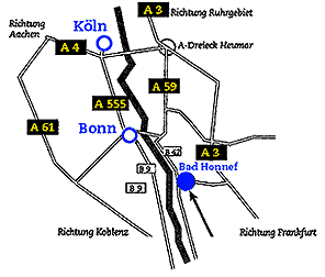Hotel Avendi Hauptstraße 22 D-53604 Bad Honnef statt. Bahnstation: Bad Honnef (Anfahrt von Köln oder Koblenz) Stadtbahn (ab Hauptbahnhof Bonn) Linie 66,