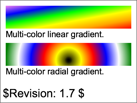 The next rectangle has a radial gradient fill with a multi-color stops from innermost to outermost in the following order : black, yellow, red, blue, white, green.