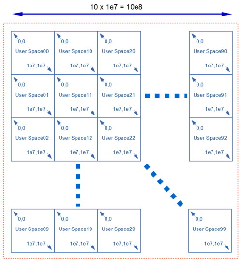 By providing a user coordinate system with an appropriate origin to each tile, the number of significant figures increases one digit in case of 10x10 tiling.
