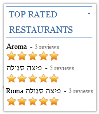 In the third restaurant name the number is back in the right place, but the word 'Roma' is part of the Hebrew name, and should appear to the left of the Hebrew text. In other words, we need to apply a base direction of RTL to the whole of the injected text.