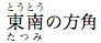 <ruby>東•とう•tou•南•なん•nan</ruby>の方角
