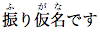 <ruby>振•ふ</ruby>り<ruby>仮•が•名•な</ruby>です