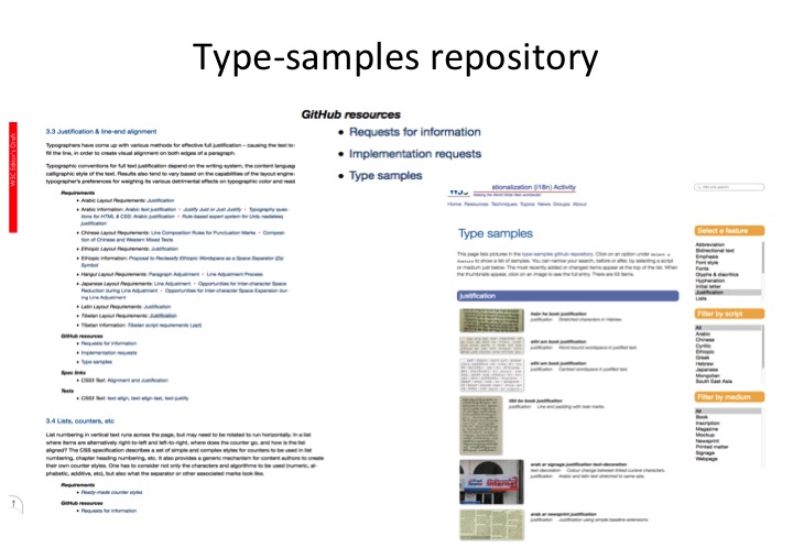 The typography index just mentioned also points to the index for the brand new type-samples GitHub repository. This repo collects images of typographic usage that can be used for examples, tests, or illustrations. For example, there is already an image illustrating Japanese list and counter-style features, and another illustrating warichu.