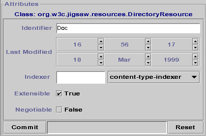 The Attributes Editor allows you to edit the resource/frame properties like "Indexer", "Extensible", "Negotiable"... Each attribute has its own graphical editor.