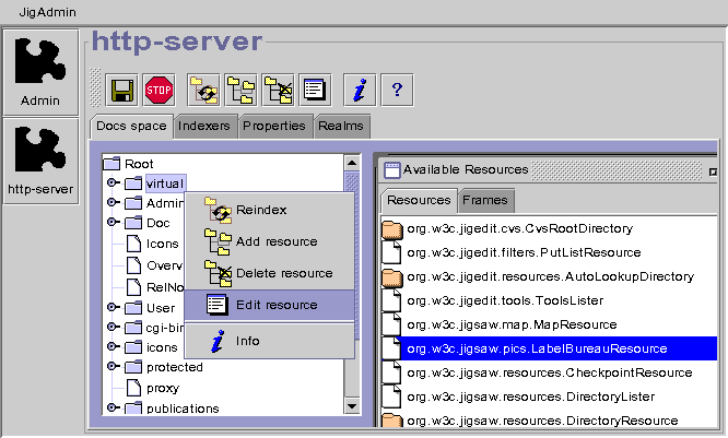 - Select the "org.w3c.tools.resources.VirtualHostResource"