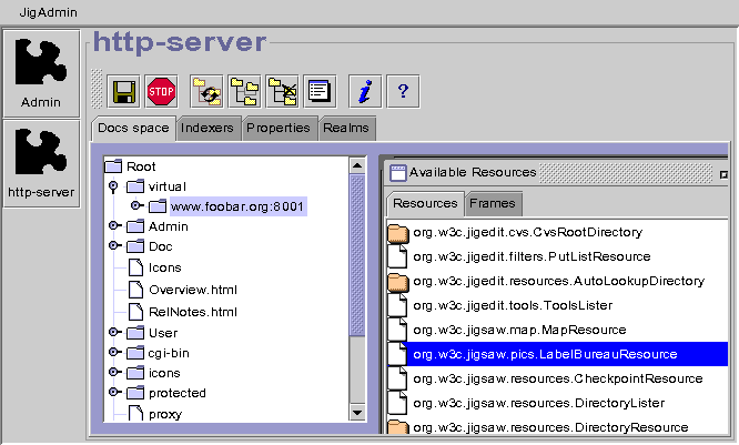 - Select the "org.w3c.jigsaw.frames.VirtualHostFrame"